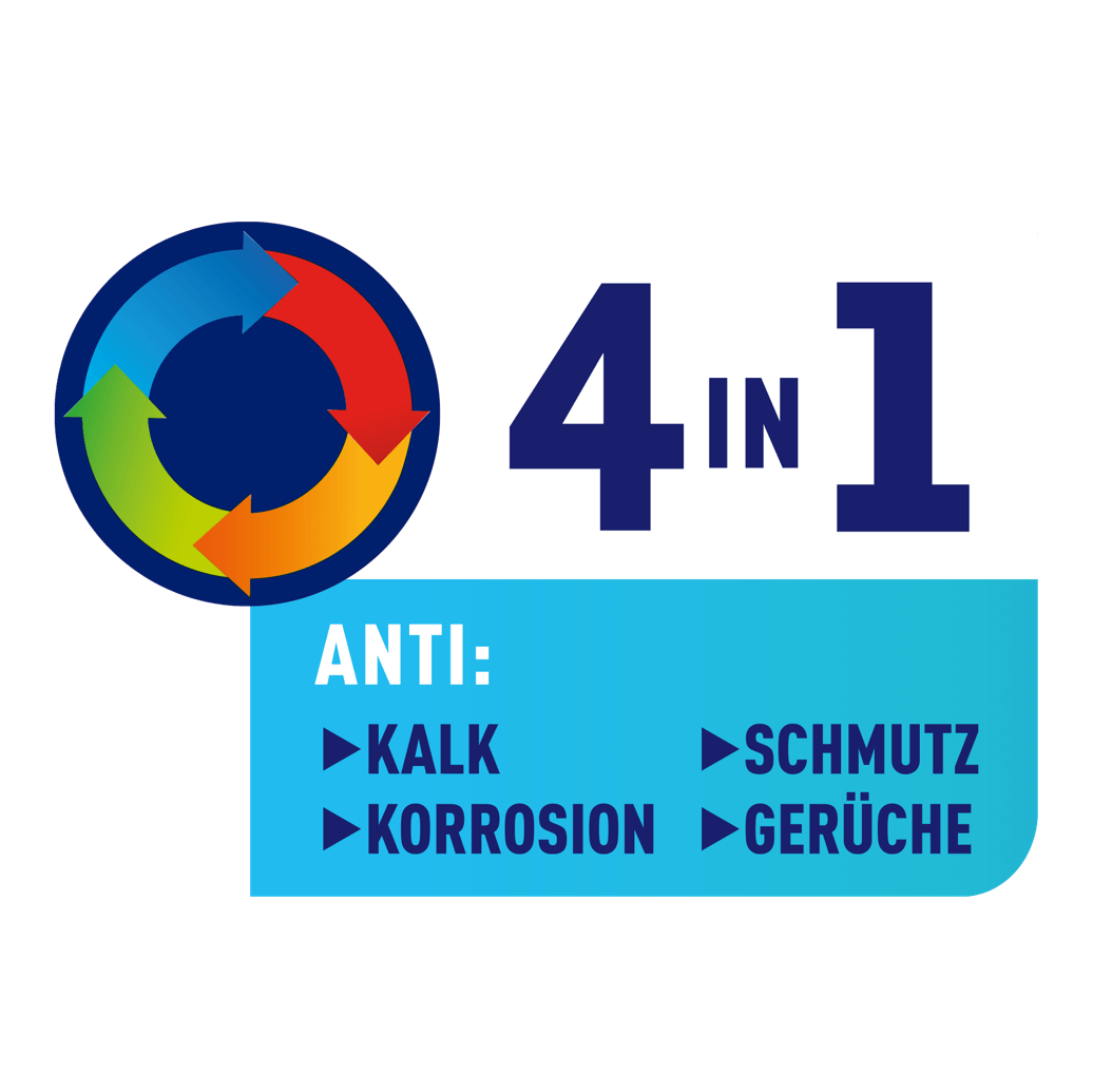 Calgon hat seine erfolgreiche 3in1 Formel weiterentwickelt und setzt mit der 4in1 Formel neue Maßstäbe bei der Waschmaschinenpflege – die 4in1 Produkte sind als Gel, praktische Tabs oder Pulver erhältlich. Neben dem Verhindern von Kalk- und Schmutzablagerungen schützt diese auch vor Korrosionsverkrustungen und bekämpft die Geruchsbildung in Ihrer Waschmaschine.